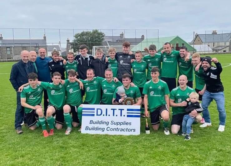 Pictured are Liam Spence of DITT presenting the overall trophy to David Wiseman, captain of Whitedale team.